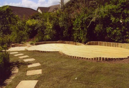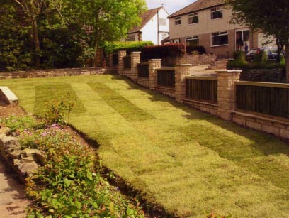 Ground cleared, levelled and a utility grade lawn turf laid. |